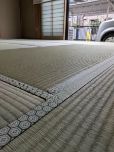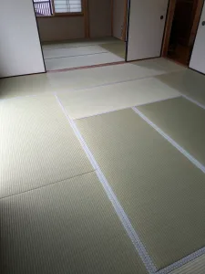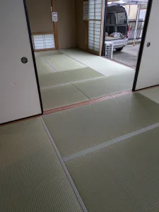 伊勢原市内児童館の畳修繕をさせていただきました!荷物等の移動は自治会役員様がしてくださいました。6帖間と10帖間の続間。畳床もしっかりしておりまだまだ長く使用できる状態でした! 畳縁も明るくスッキリした物を選びました。